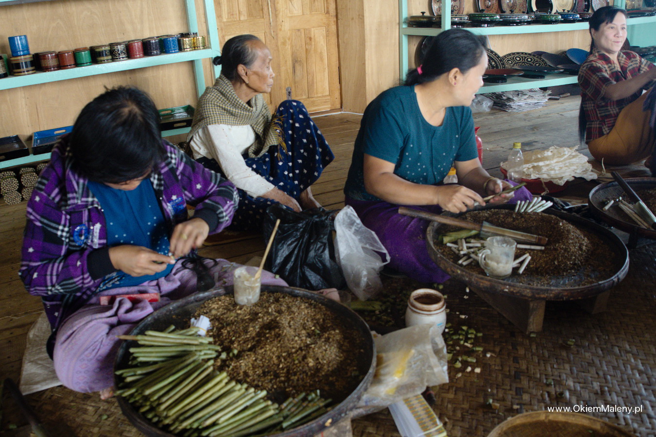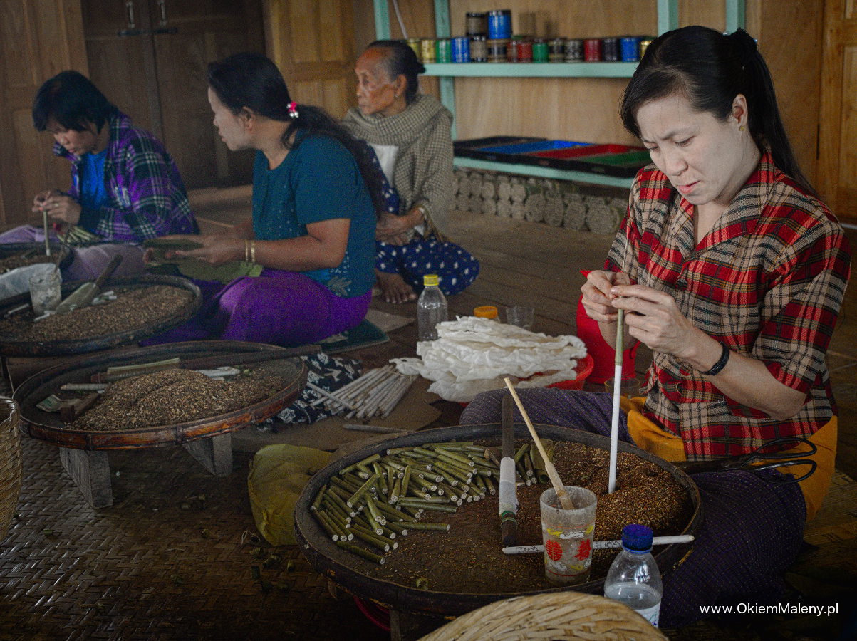 Ostanią i najbardziej przystępną cenowo manufakturą była manufaktura cygar i cygaretek czyli birmańskich cheroots. Można ich nawet posmakować. Są bananowe – makabrycznie słodkie, anyżowe i naturalne.