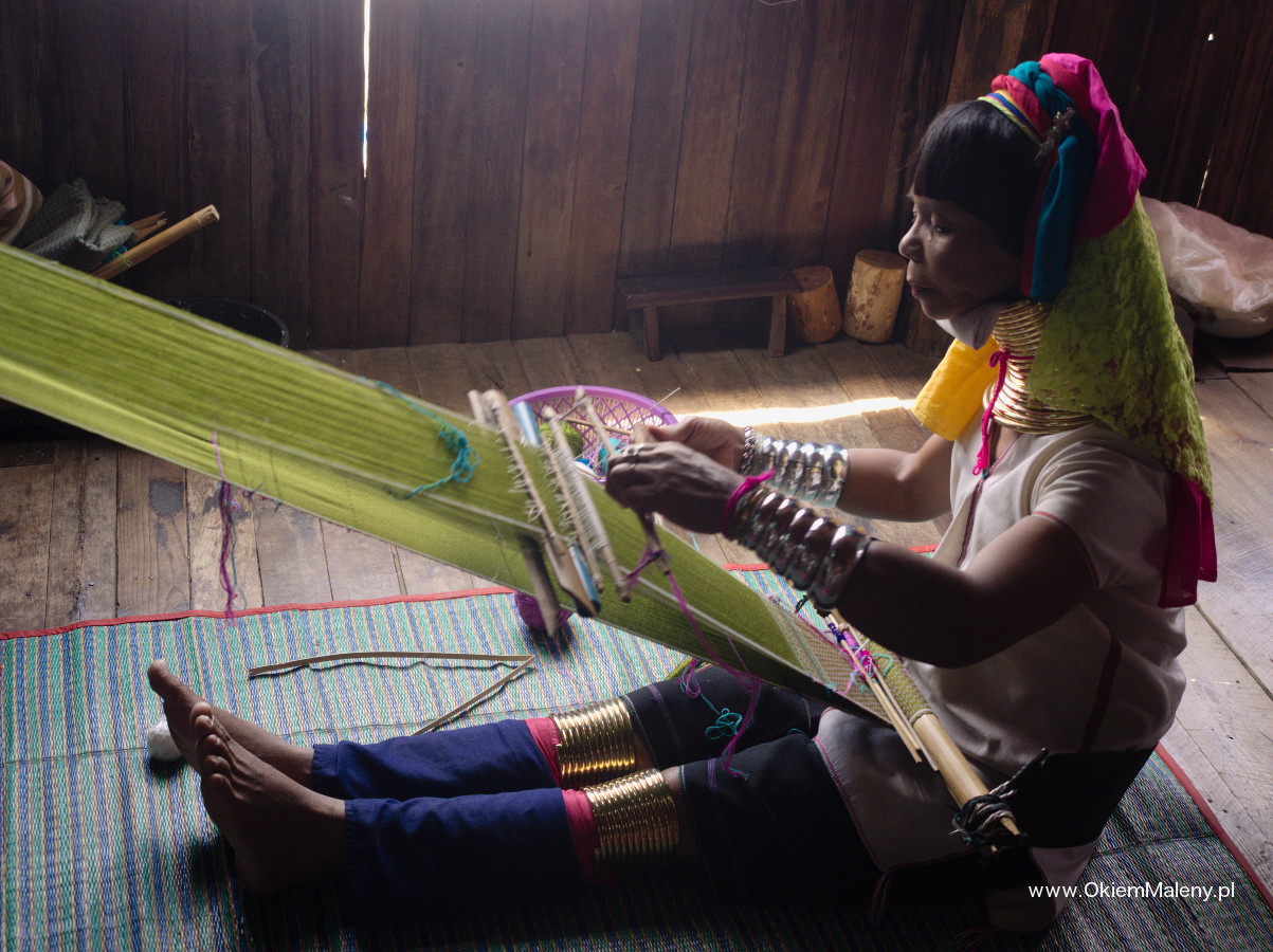 W Birmie dwukrotnie spotkałam długoszyje kobiety. Pierwszy raz w okolicach Nowego Bagan. Siedziały niedaleko drogi i tkały swoje chusty. Drugi raz nad Inle Lake.