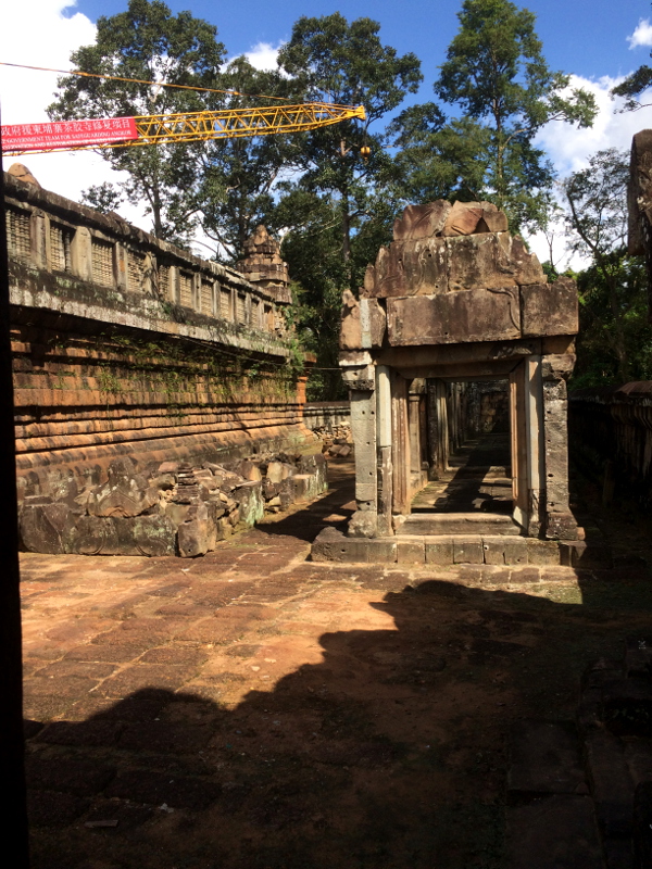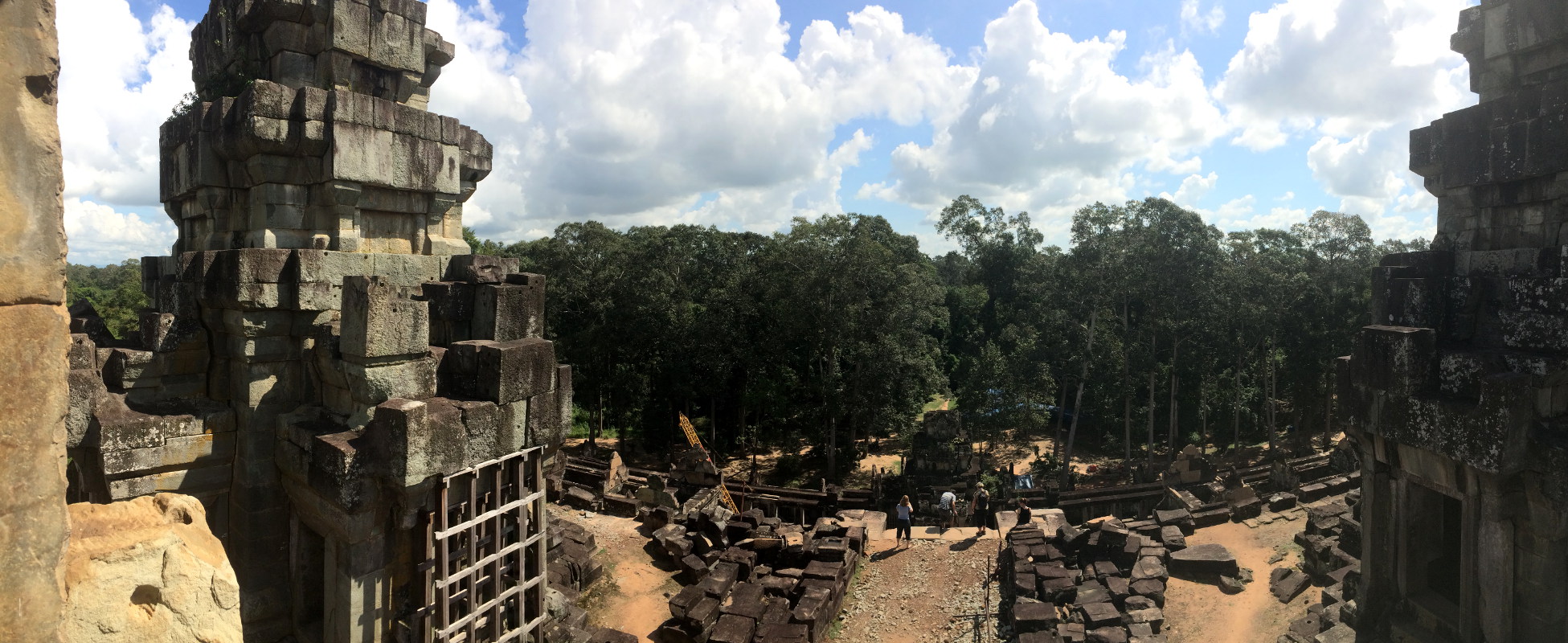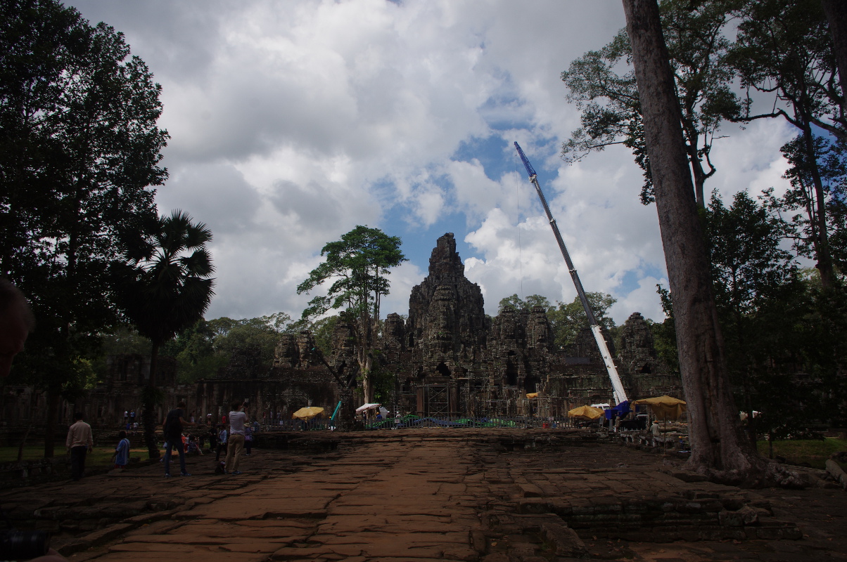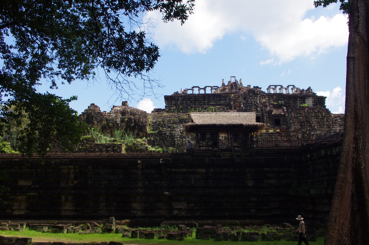XI wieczna świątynia Baphuon w XV wieku z hinduistycznej stała się buddyjska. Taka „zmiana wyznania” świątyń nie należała do rzadkości, wszystko było uzależnione od wyznania panującego króla, początkowo dominująca religia w królestwie Kmerów był Hinduizm. W 2011 roku zostały ukończone prace odrestaurowania świątyni prowadzone przez francuskich archeologów. Charakterystyczną cechą tej świątyni jest jej tylna ściana przedstawiająca leżącego Buddę. Rzeźba ma 9 metrów wysokości i 70 metrów długości. Szczerze mówiąc zajęło mi trochę czasu nim z pofalowanej ściany wyłoniła się sylwetka Buddy. 🙂