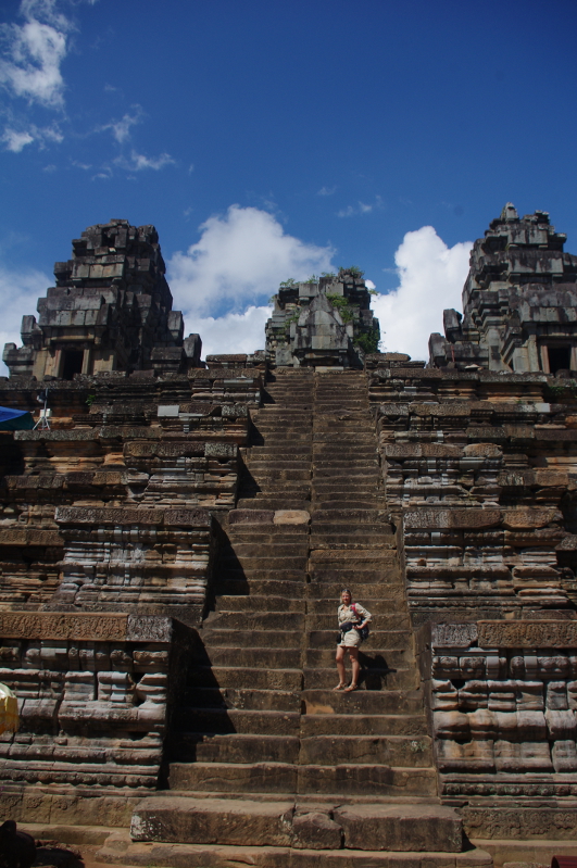 Ta Keo jest starsza od Ta Phrom. Wybudował ją Dżajawarman V w X wieku i miała symbolizować mityczną górę Meru. Potocznie znana jest z piramidy, na którą każdy się wspina, a na górze nie ma nic spektakularnego, no oczywiście oprócz widoku 😉 Świątynia nie została ukończona – być może jednym z powodów jest uderzenie pioruna, które wzięto za zły omen.
