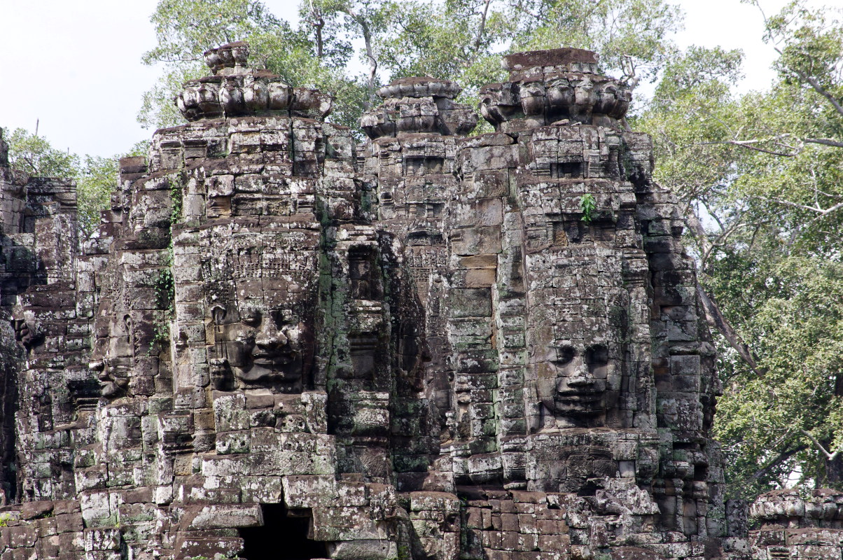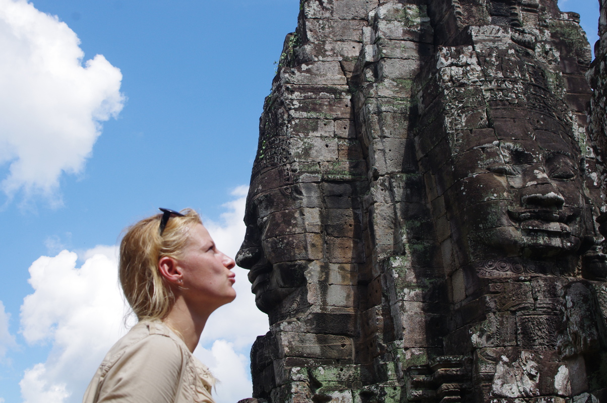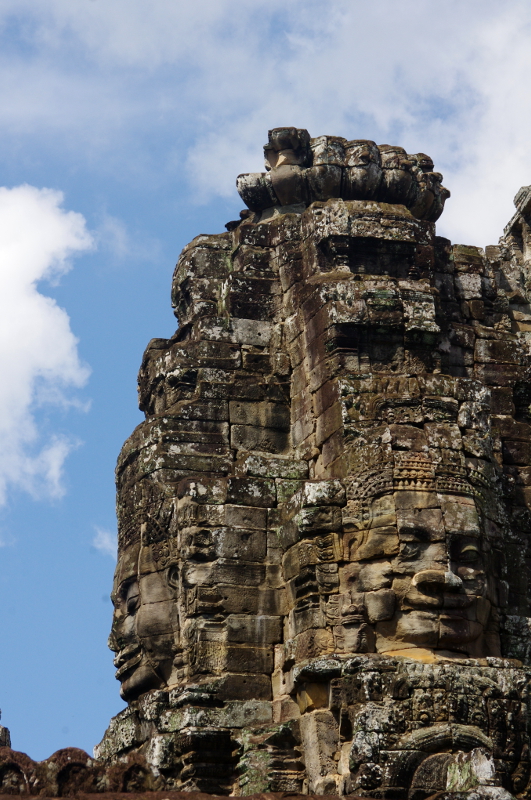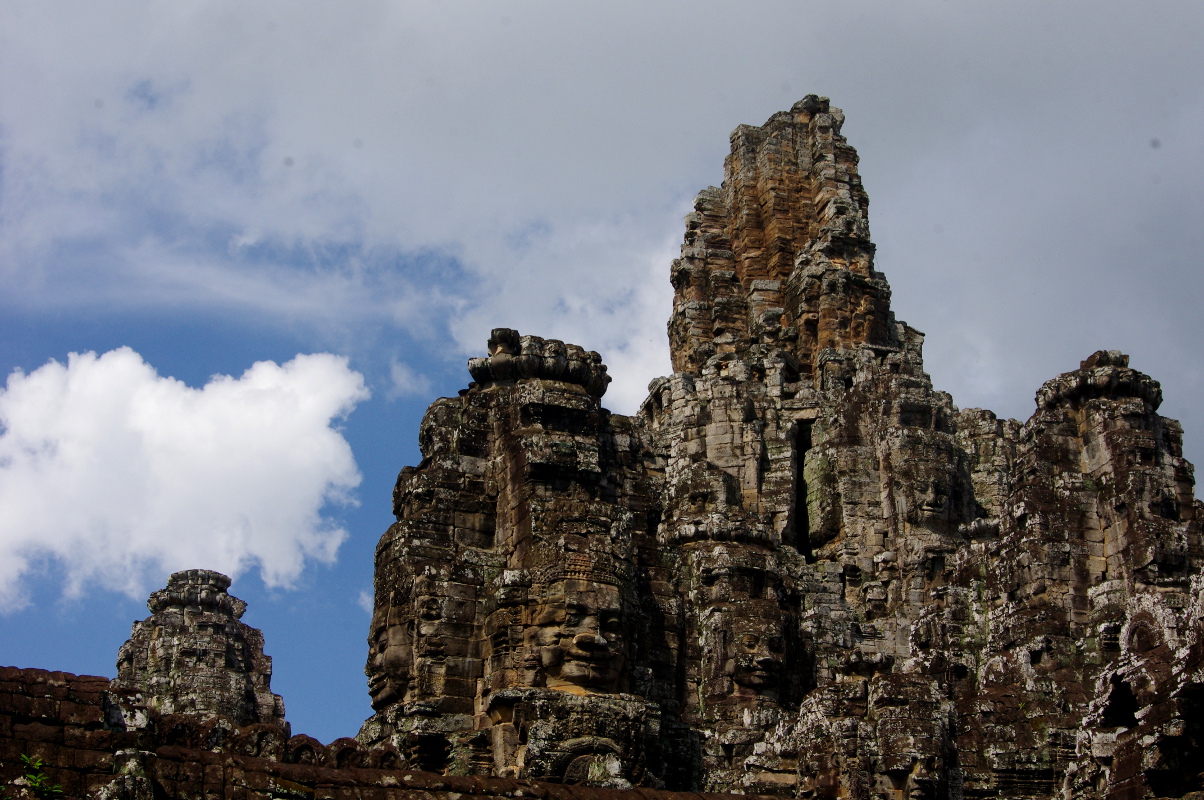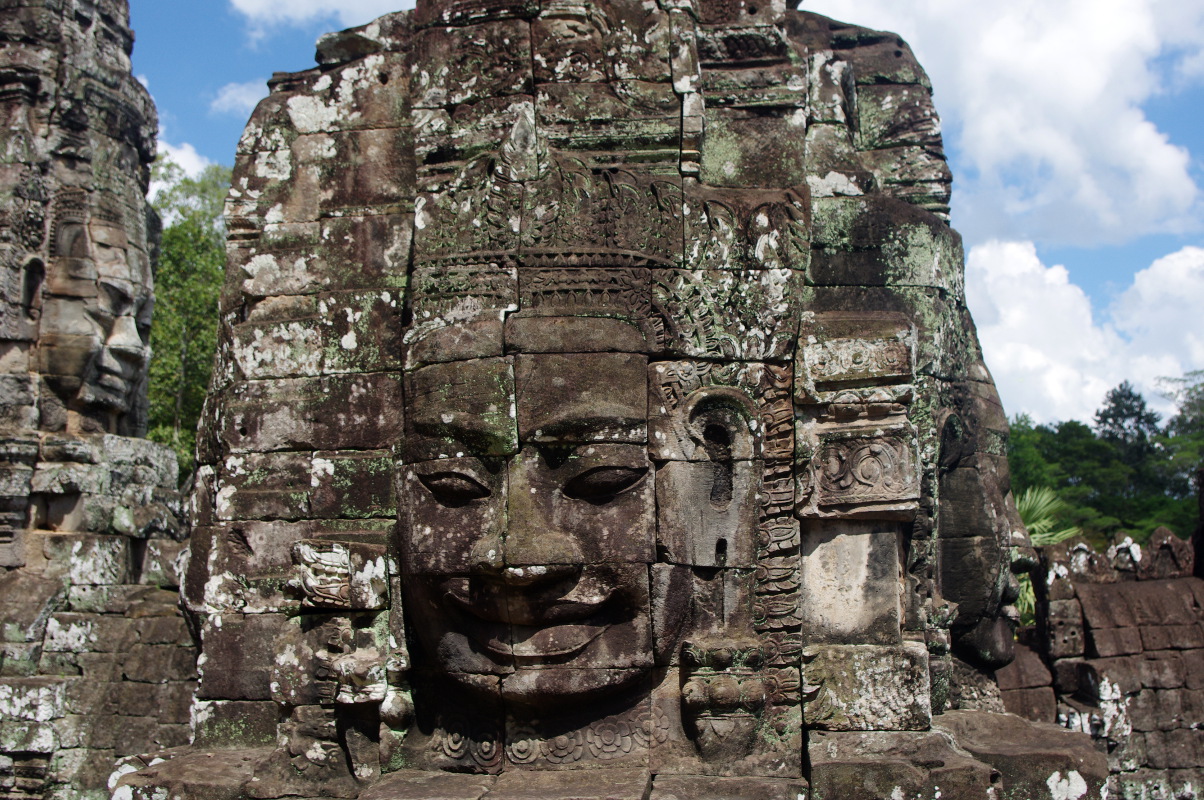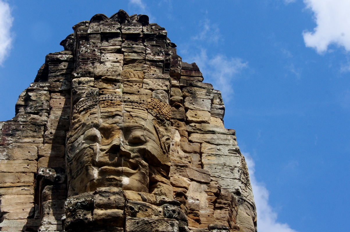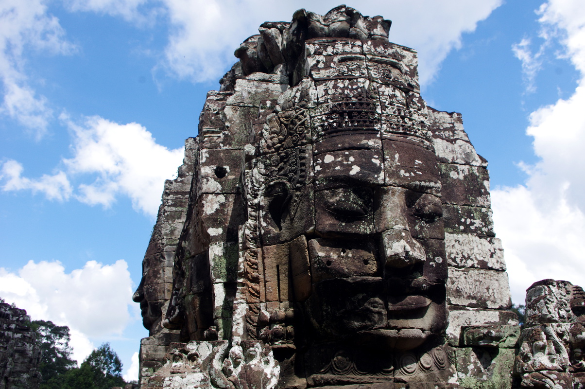 Na koniec zostawiłam świątynię Bayon z 54 wieżami, z których obserwuje nas 216 twarzy Buddy Awalokiteśwara (uosabia on współczucie). Wybudowana została przez tego samego króla, który ufundował klasztor Ta Phrom, czyli Dżajawarmana VII – wg jednej z teorii kamienne twarze przedstawiają podobiznę samego króla. Ze świątynią Bayon związane jest też określenie uśmiech Angkoru – rzeczywiście wszystkie oblicza mają podobny, nieco tajemniczy wyraz twarzy, z lekkim uśmiechem rysującym się w kącikach ust.
