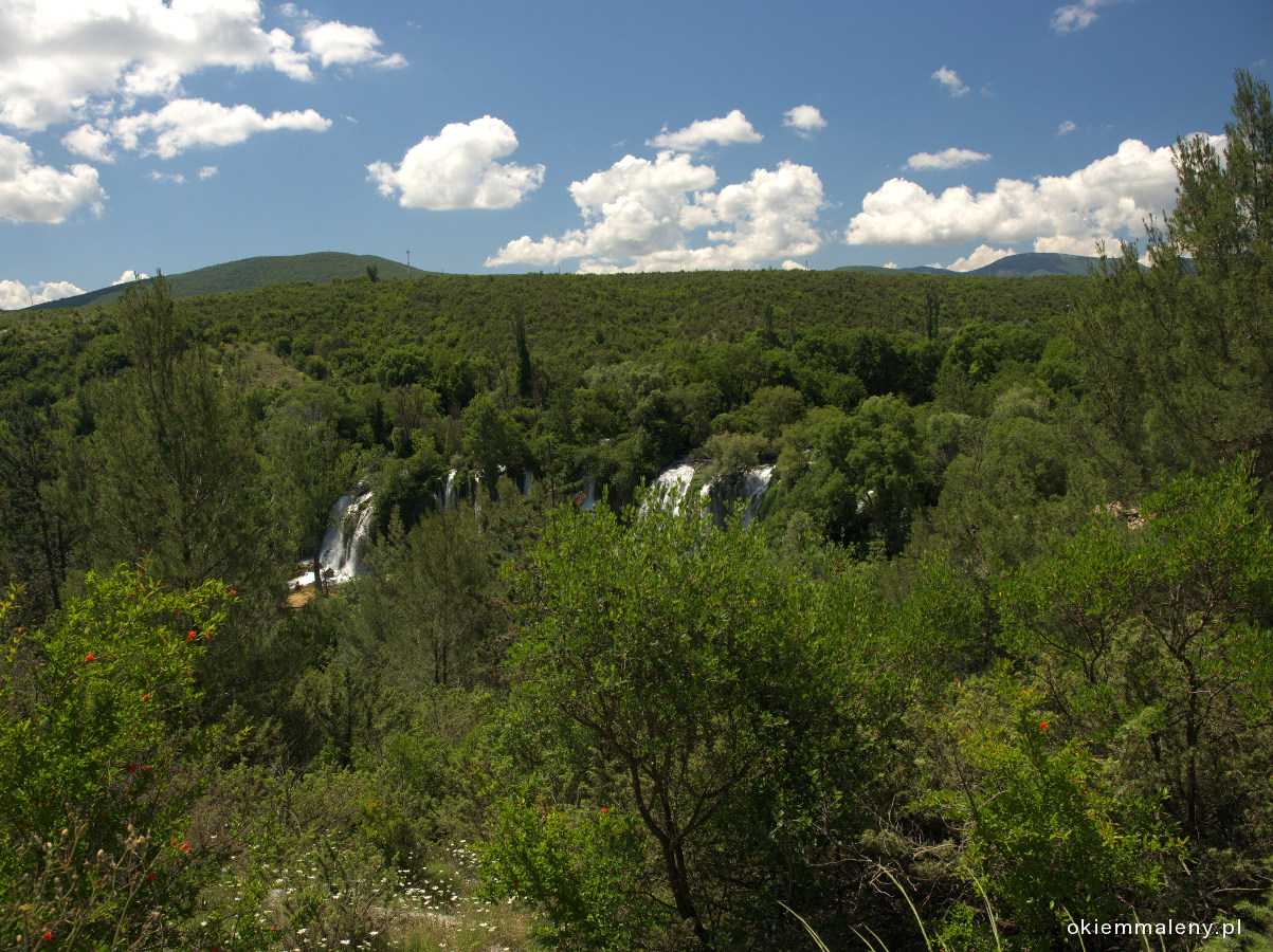 Wodospady okazały się absolutnie niesamowite. Znajdują się na rzece Trebižat, mają szerokość około 120 m i wysokość około 26m. Na spacer, zwiedzanie, wypicie kawy potrzebujemy około godziny czasu. Wstęp kosztuje 4 KM (około 2 EU) plus niewielka opłata za parking. Płaciłam chyba 7 KM za wszystko. Od parkingu do wodospadów prowadzi betonowa droga, zajmuje około 10 minut. Wodospady słychać już z daleka, jednak odsłaniają swoje piękno po kawałeczku. Najpierw widać tylko zieleń wzgórz rozciągającą się aż po horyzont i lekki zarys spienionej wody.