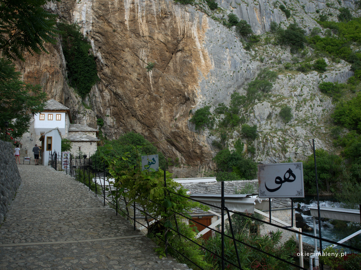 Parking na górce w Blagaju kosztuje około 5 KM i jest bez ograniczeń czasowych. Parking znajduje się niecały km od klasztoru Derwiszy. Bilet wstępu kosztuje 4 KM. Przed wejściem do pomieszczeń chanaki (nazwa sufickiego klasztoru) musimy ubrać się w dwie chusty – jedną zostajemy opleceni w pasie, w drugą ubieramy na głowę. Czy warto? Trudno powiedzieć. Najładniejszy widok na sam klasztor jest z przeciwnej strony rzeki Buny. W środku są bardzo ascetyczne wnętrza, jeśli zwiedziliśmy Svrznu kuću w Sarajewie lub dom Muslibegovića w Mostarze chyba można sobie odpuścić i przysiąść na kawie z widokiem na klasztor.