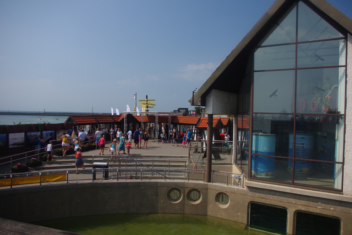 Dziś zbaczając trochę z utartego szlaku odkryłam nowy, otwarty rok temu Dom Morświna. Został otwarty dla turystów rok temu, jest to nowy obiekt, który zbiera na swój rozwój. Warto odwiedzić, zapłacić 2 złote – dochód podobnie jak w fokarium przeznaczony na rozwój obiektu. Co tam znajdziemy? Porównanie morświna do delfinów, informacje o liczebności gatunku w poszczególnych akwenach, film dokumentalny, szkielet morświna, makiety morświnów – jedna po dotknięciu wydaje dźwięki jakie wydaje morświn, oczywiście odpowiednio podrasowane, by były słyszalne dla ludzkiego ucha. Warto porozmawiać z Panem sprzedającym bilety – ma niesamowite wiadomości o gatunku 🙂 Obok budynku są makiety przyszłego obiektu oraz ciekawe tablice informacyjne o całkiem nieoczywistych gatunkach ryb zamieszkujących nasze morze.